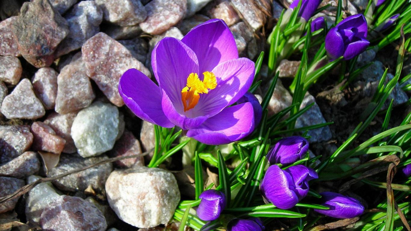Обои Крокусы на камнях