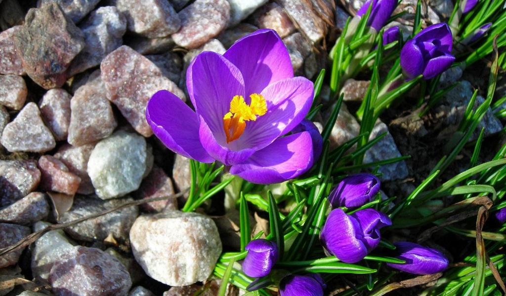 Обои Крокусы на камнях