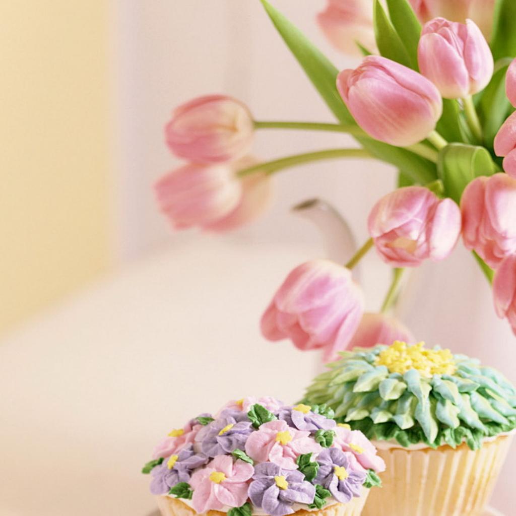 Обои Тюльпаны и пирожные