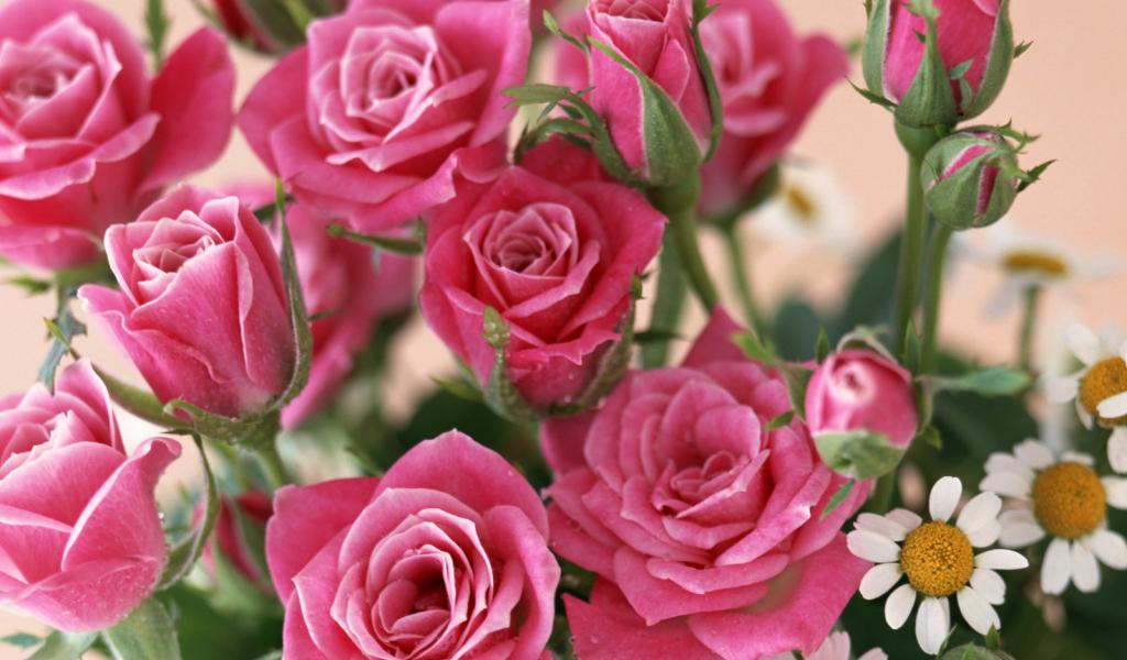 Обои Красные розы и красные тюльпаны в подарок на восьмое марта