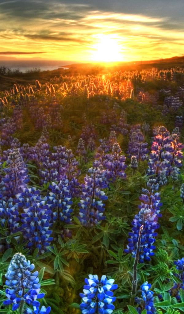 Обои Люпин цветет на закате