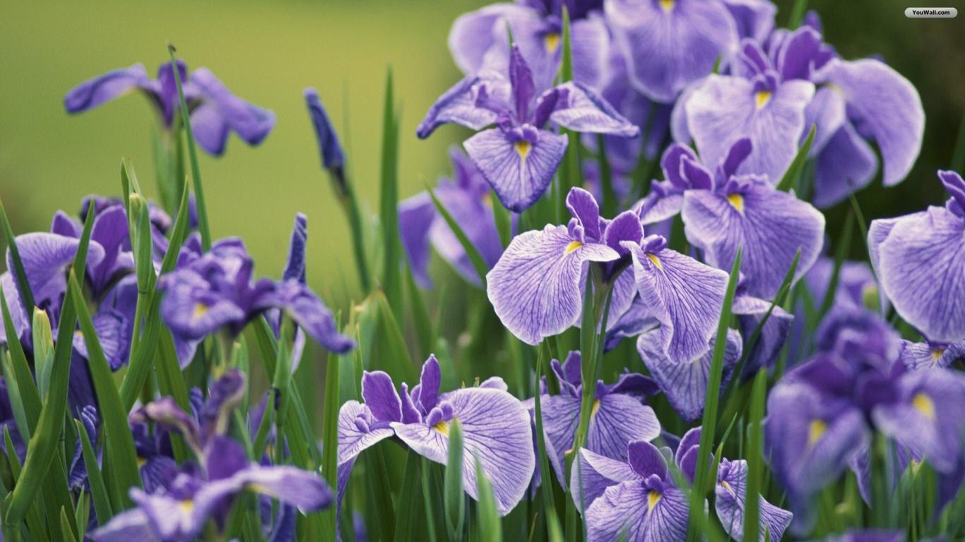 Обои Ирисы на клумбе