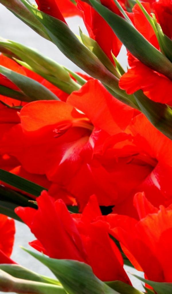 Обои Букет красных гладиолусов