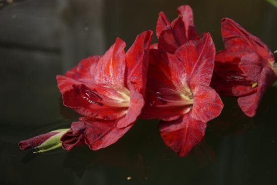 Обои Ветка с красными гладиолусами