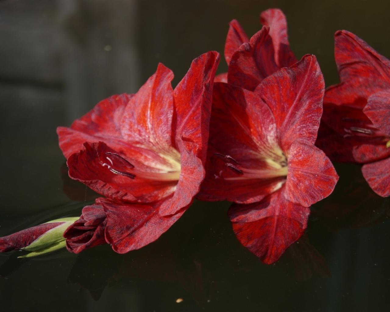 » Обои Ветка с красными гладиолусами