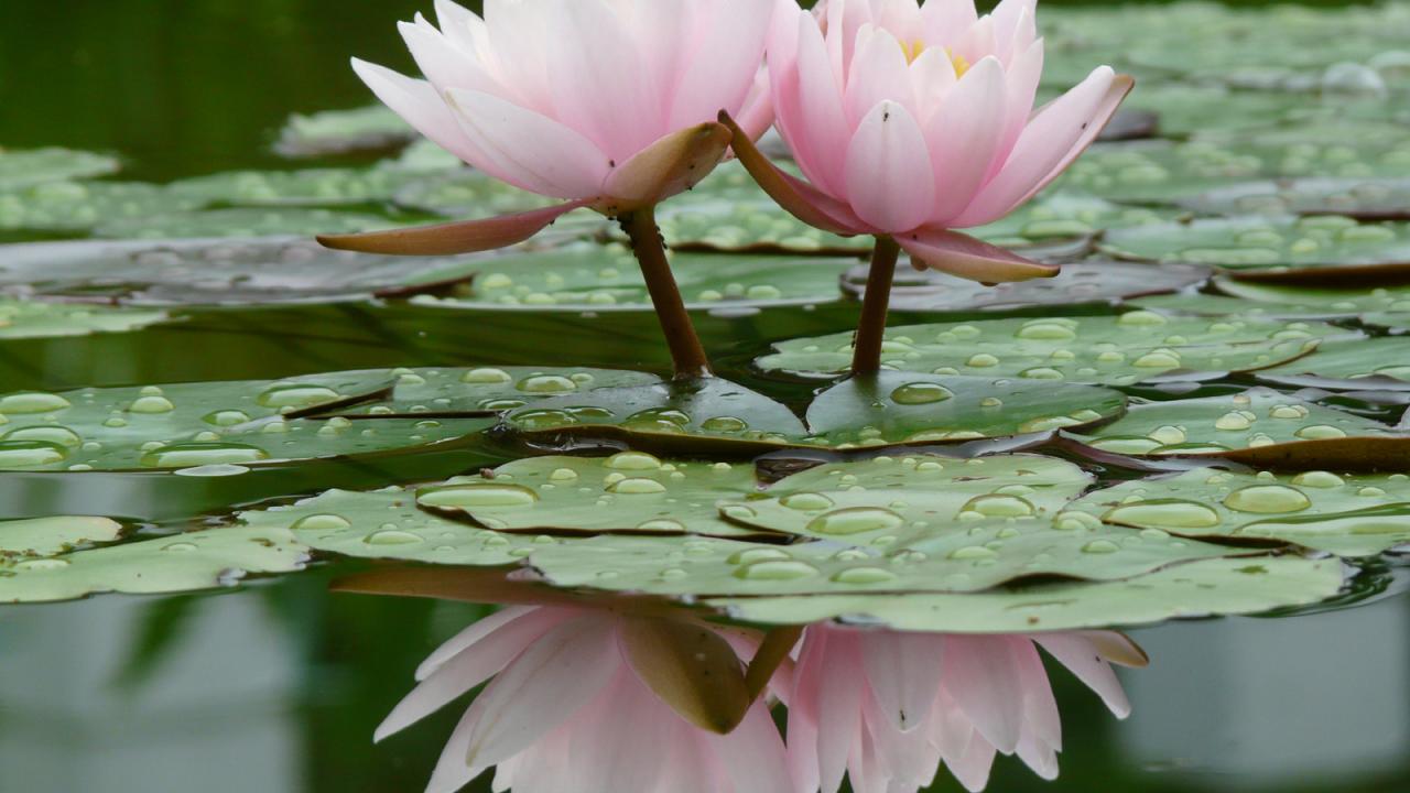 Обои Красивые цветы нимфея в саду