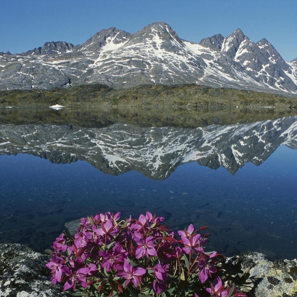 Обои Цветы в горах у озера