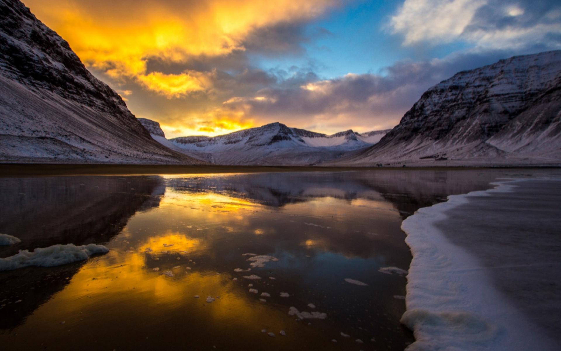 Обои Закат над горным озером