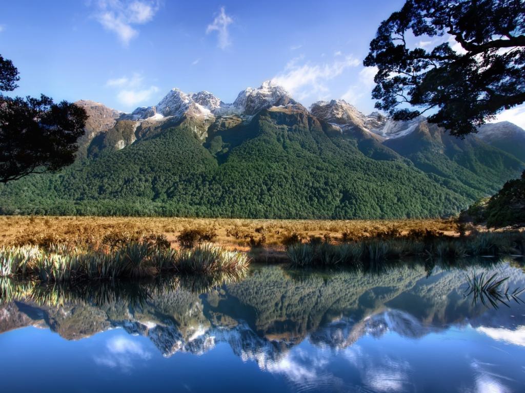Обои Горы и пруд