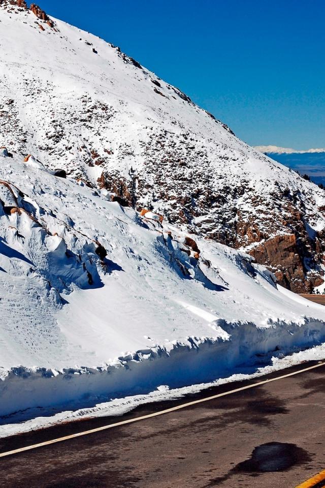 Обои Дорога среди снежных вершин