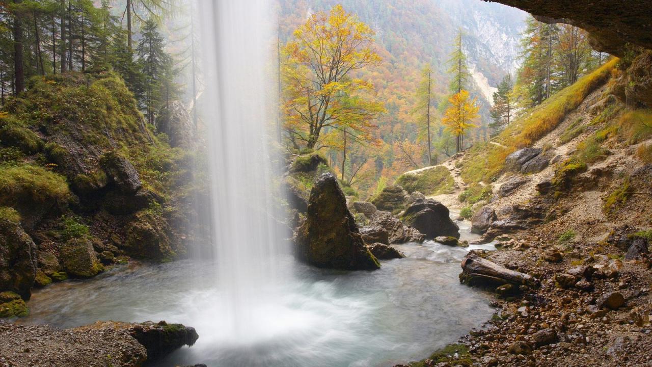 Обои Водопад внутри пещеры