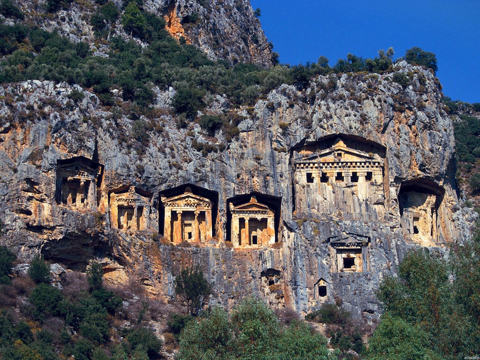 Обои Деревня высеченная в горах