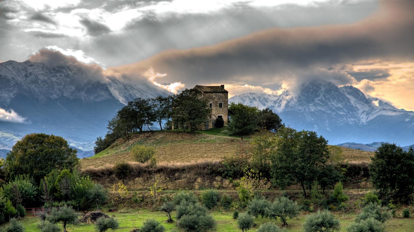 Обои Дом среди высоких гор