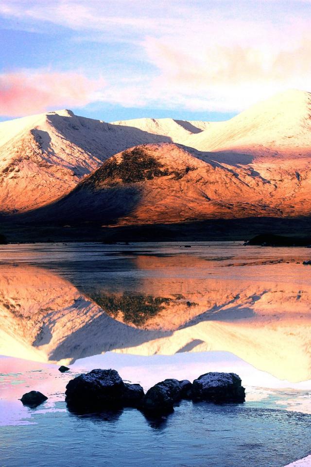 Обои Розовые облака над вершинами гор
