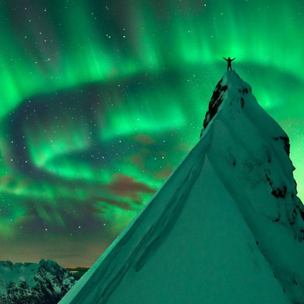 Обои Заснеженный пик на фоне северного сияния