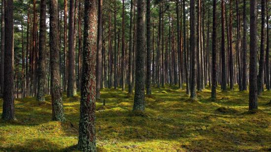 Обои Покрытые лишайником стволы деревьев