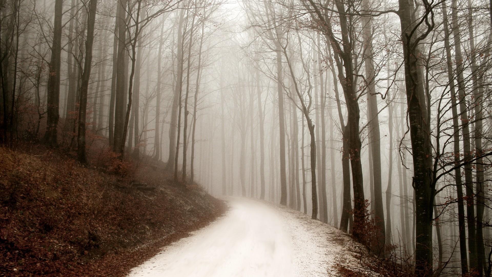 Обои Снег покрыл грунтовую дорожку в лесу