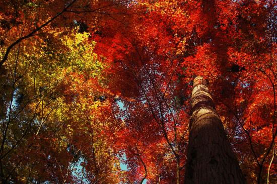 Обои Высокое дерево в осеннем лесу