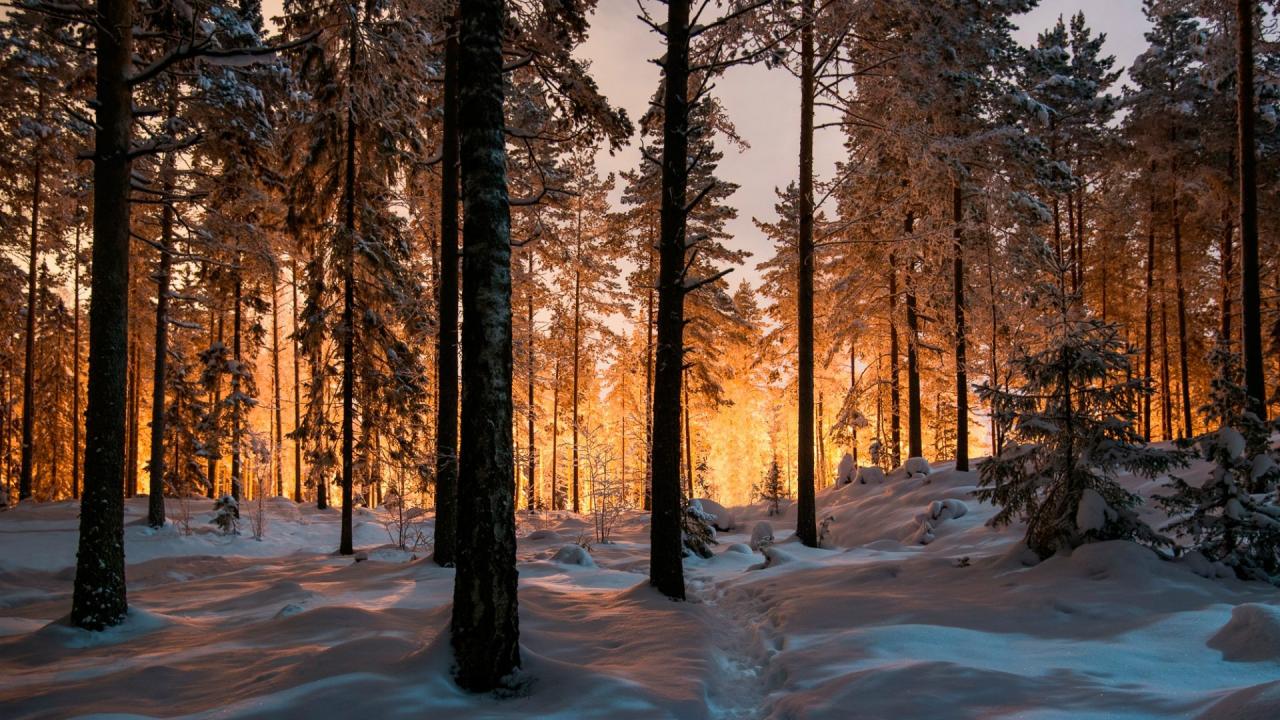 Обои Сказочный зимний лес на закате