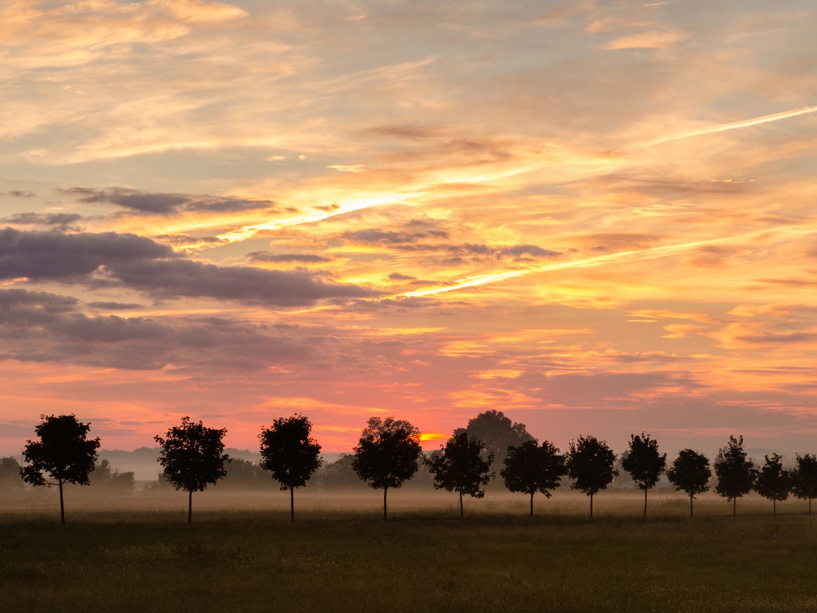 Обои Закат за деревьями