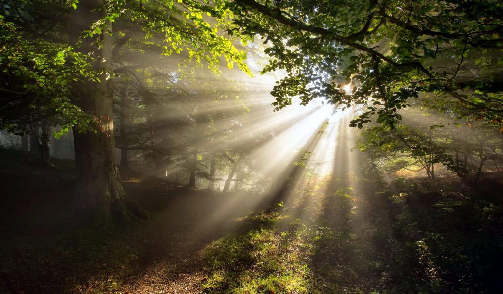 Обои Лучи солнца через листву