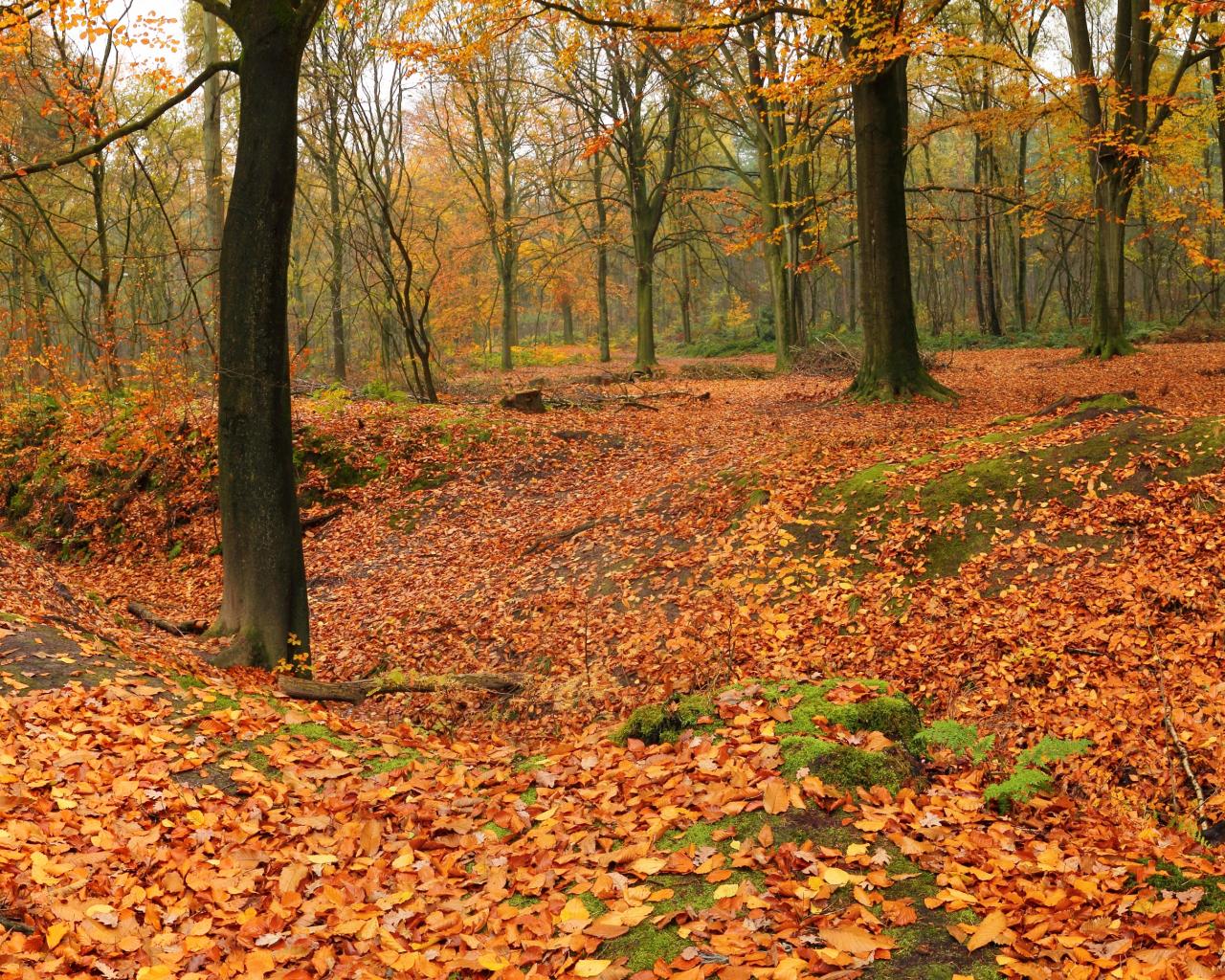 Обои Листья, Длинные волосы, лежит, Осенние листья