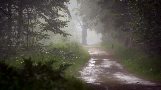 Обои Мокрая дорога в лесу