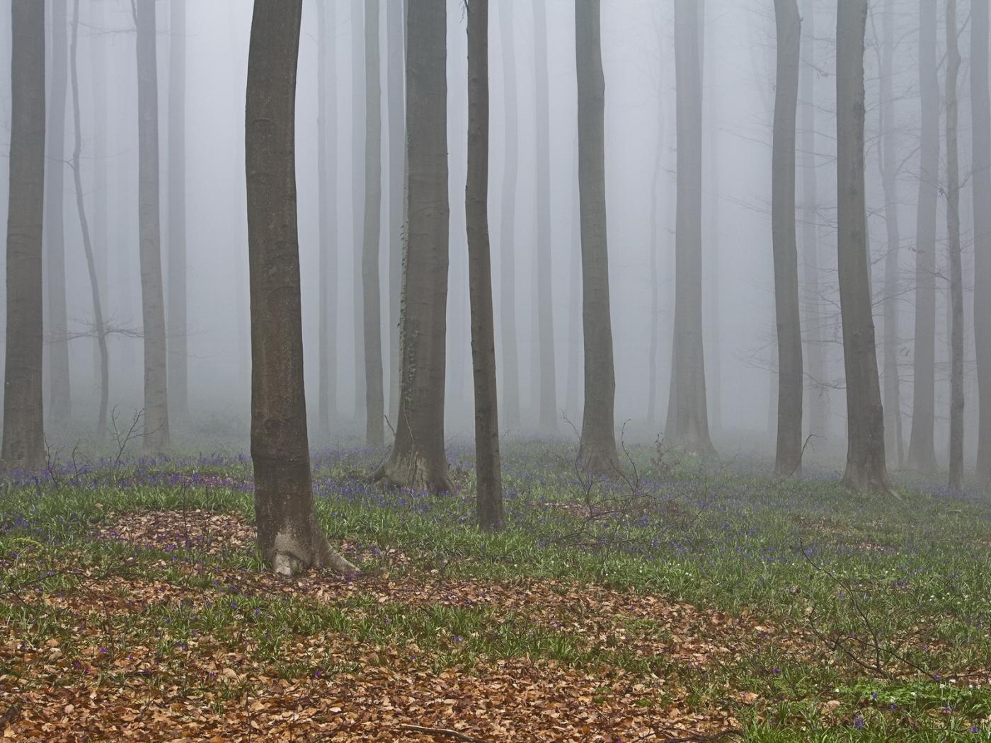 Обои В лесу осенний туман