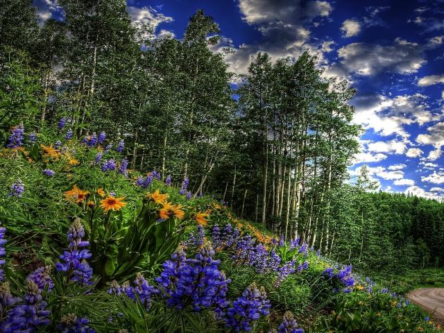 Обои Цветы около дороги