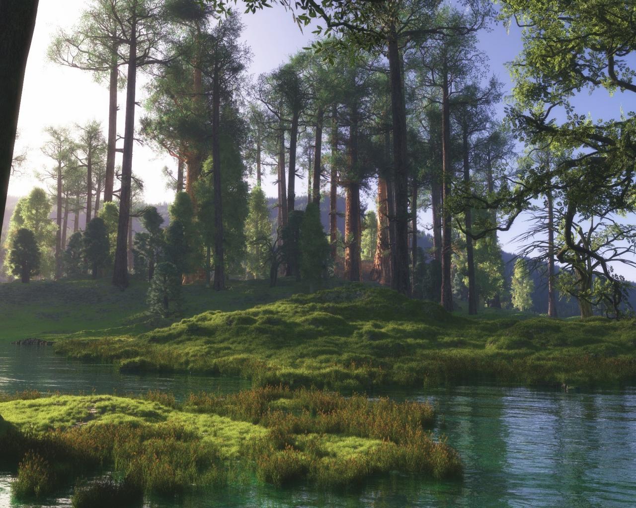 Обои Деревья, Зеленая трава, Вода, мох