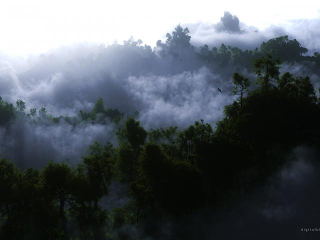 Обои Туман среди деревьев