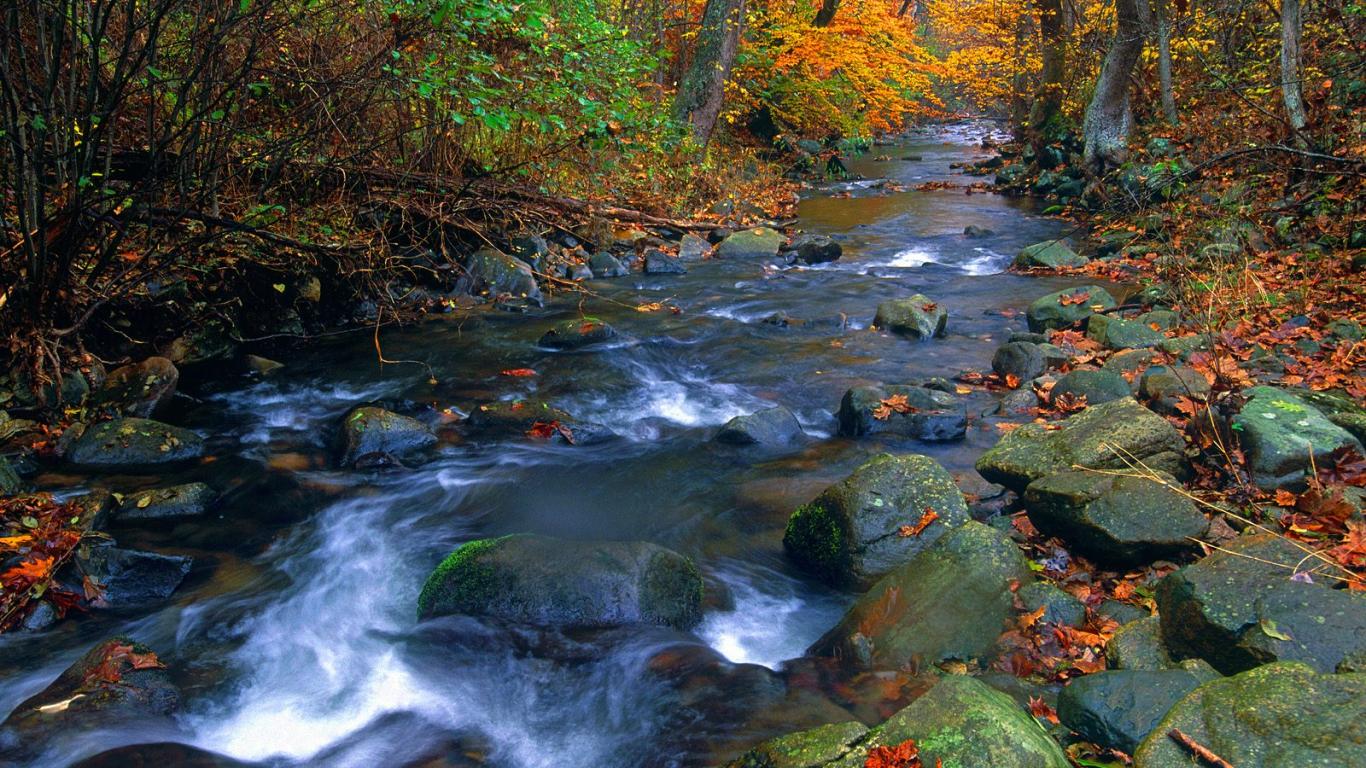 Обои Река, текущая в лесу