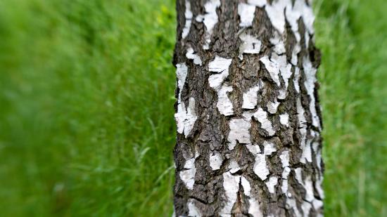 Обои Ствол березы на фоне травы