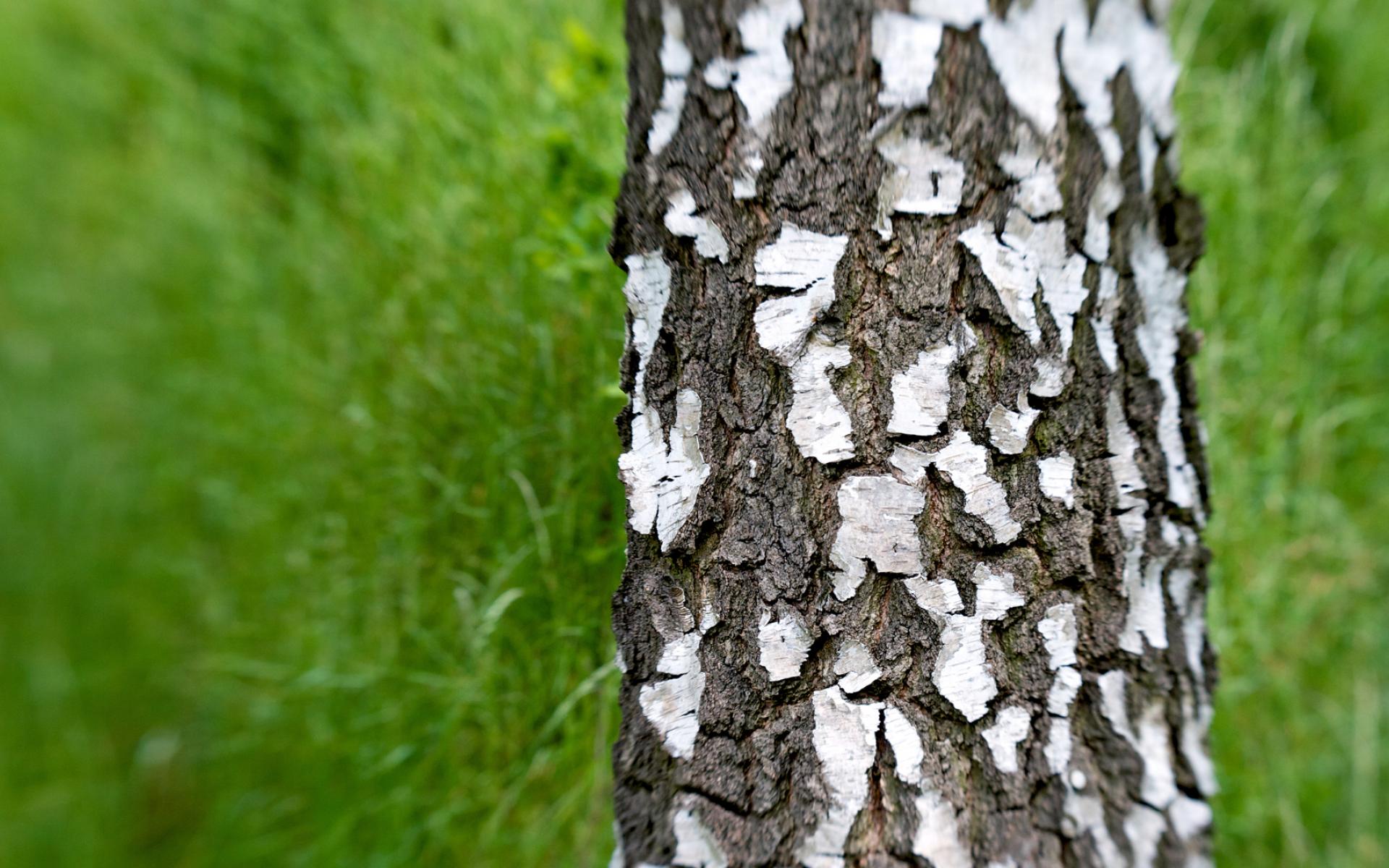 Обои Ствол березы на фоне травы