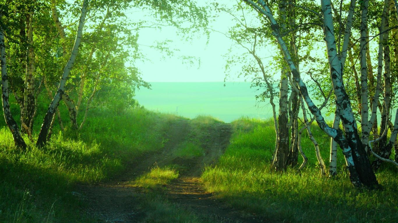 Обои Дорога среди берез