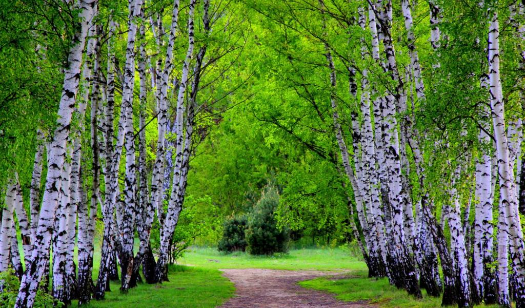 Обои Аллея березовых деревьев