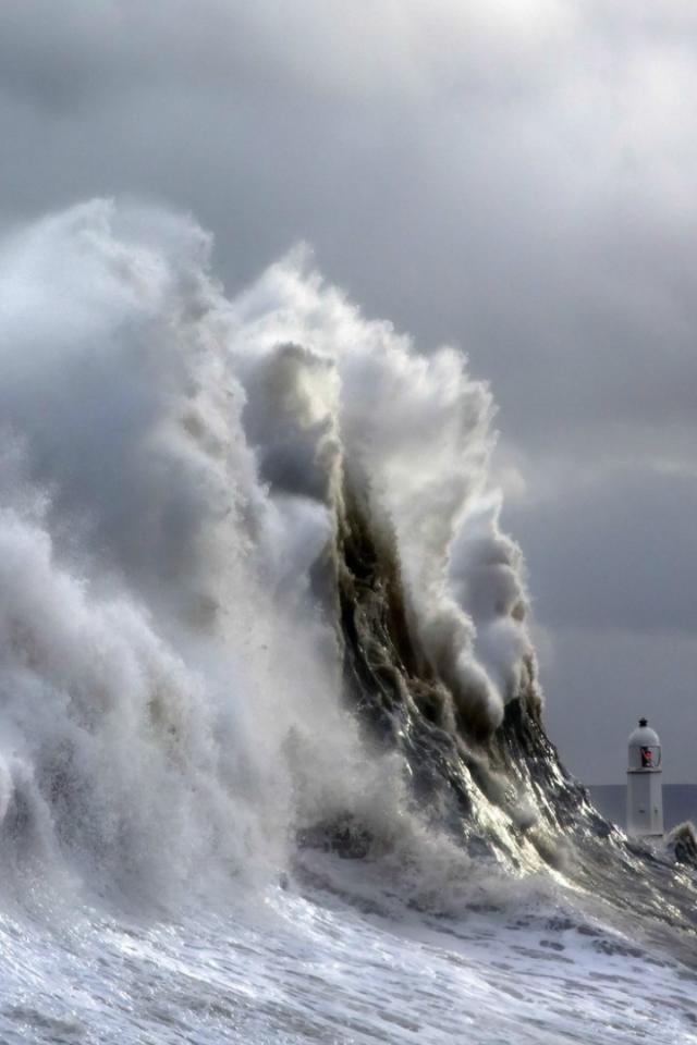 Обои Волна накрывает маяк