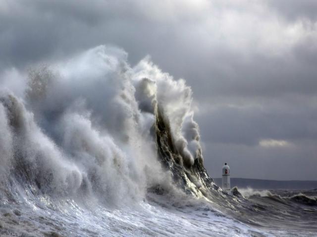 Обои Волна накрывает маяк