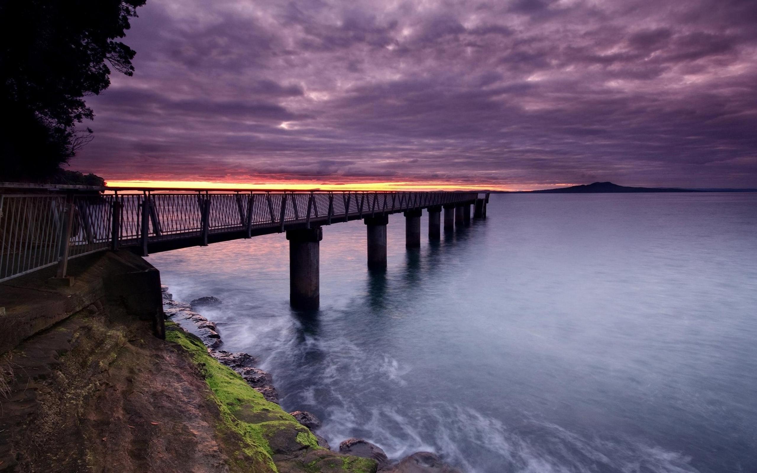 Обои Пирс в заливе на бетонных сваях
