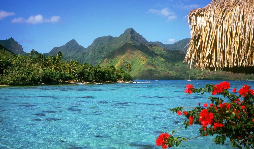 Обои Синее море и зеленые горы