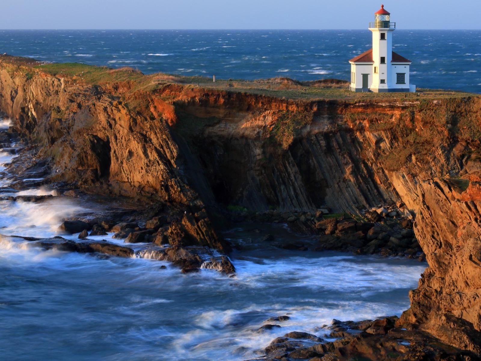 Обои Маяк на скале у берега