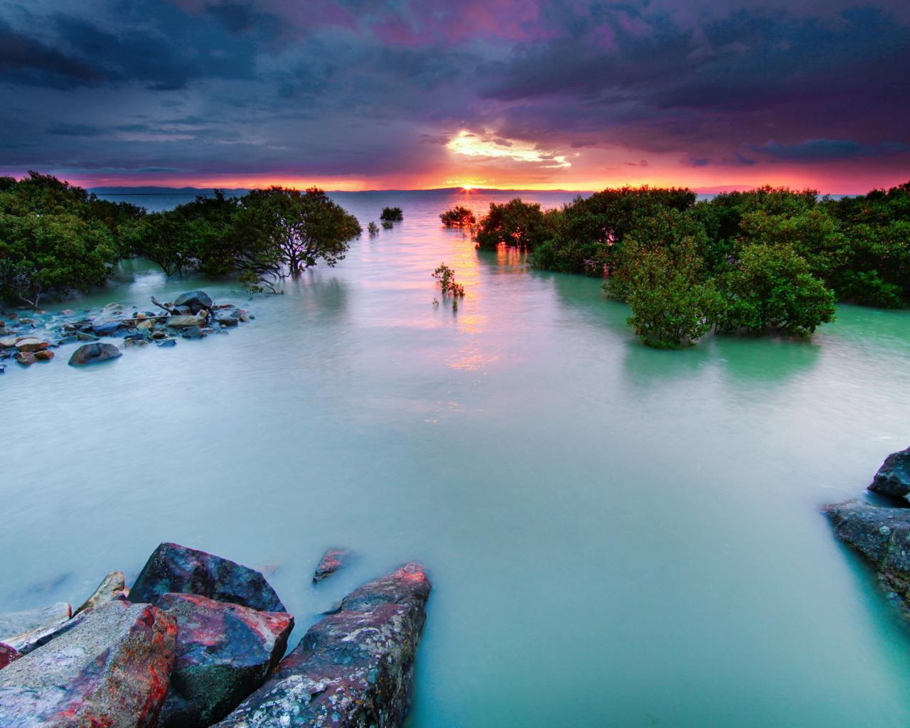 Обои Прилив на закате