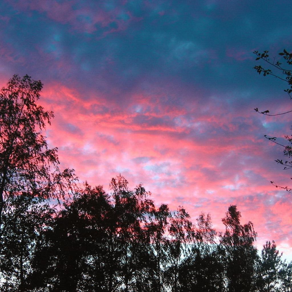 Обои Розовые облака над деревьями