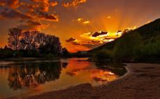Обои Закат за черной горой