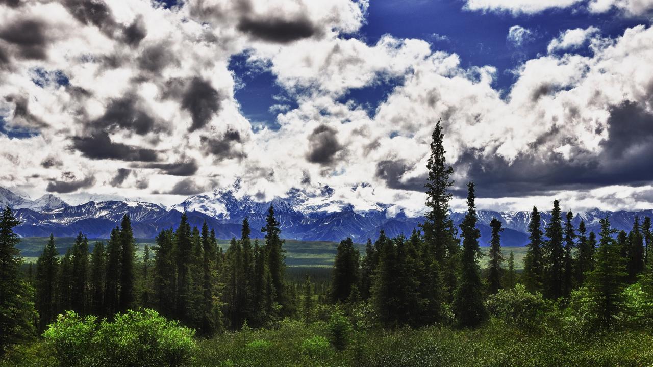 Обои Плывущие над лесом облака