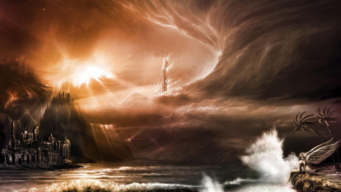 Обои Лучи солнца через грозовые тучи