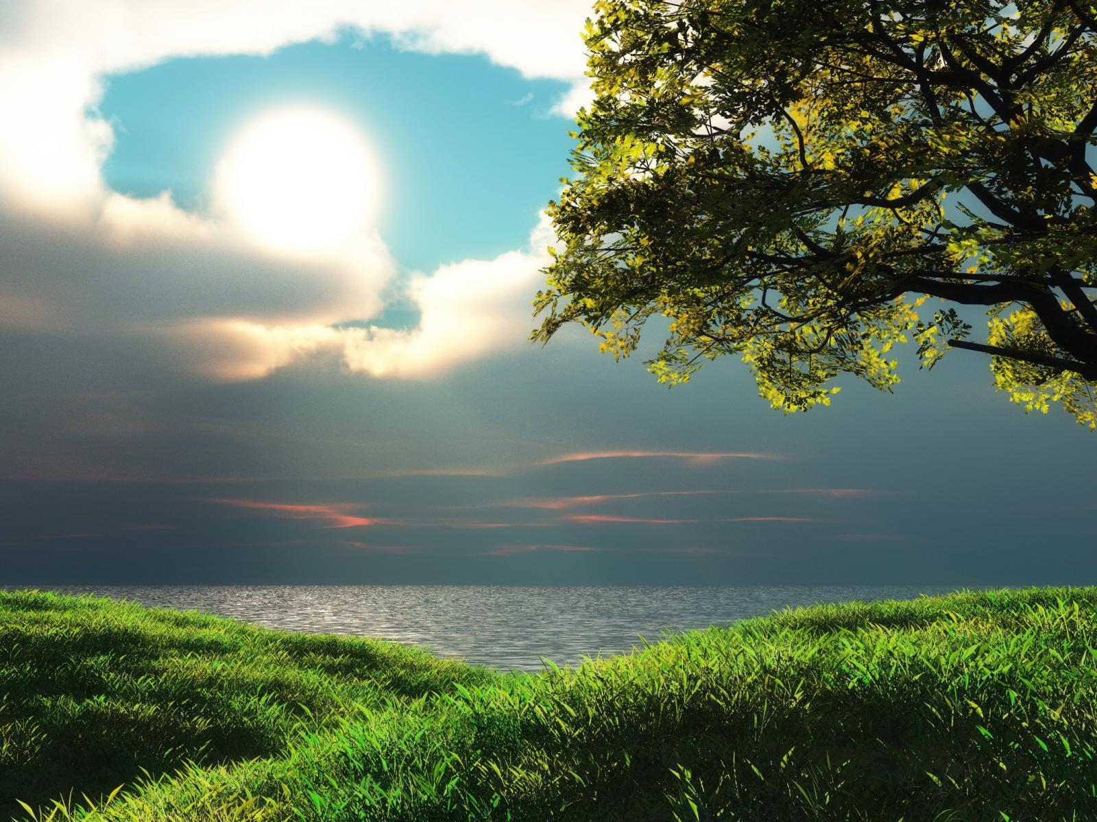 Обои Солнце между облаков