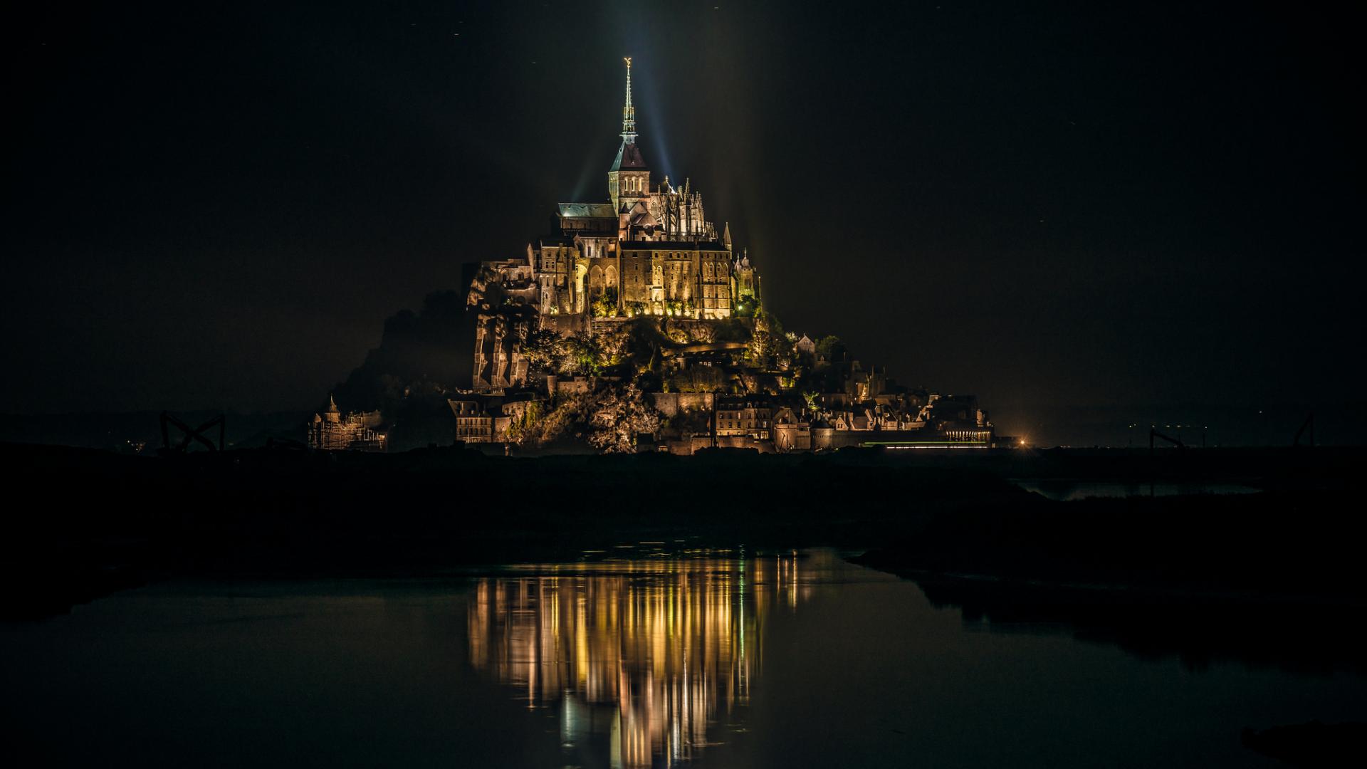 Обои Замок на острове в Нормандии, Франция