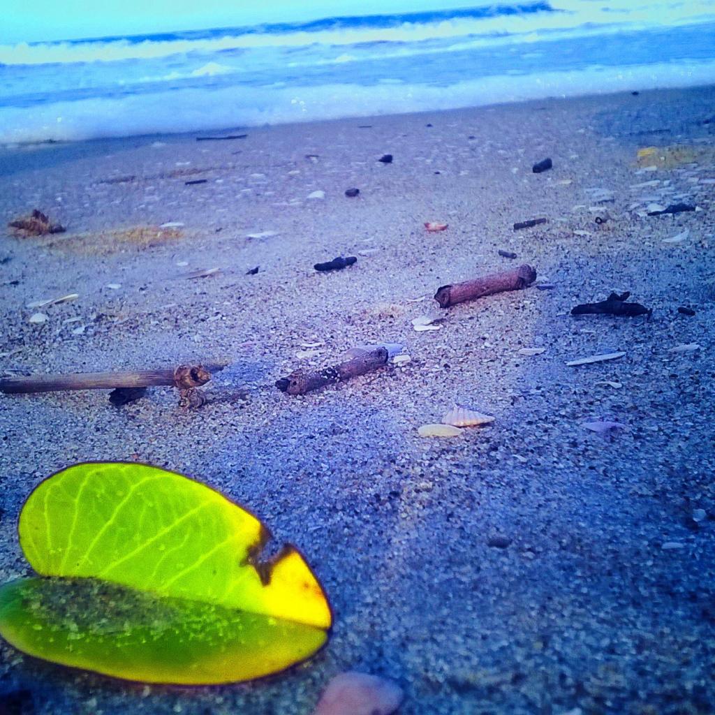 Обои Лист растения на песке пляжа