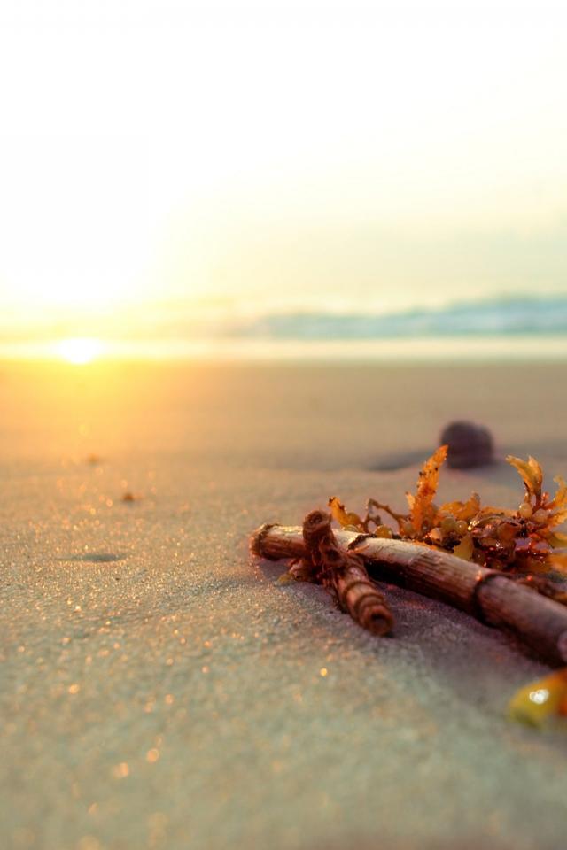 Обои Ветку бамбука выбросило на пляж
